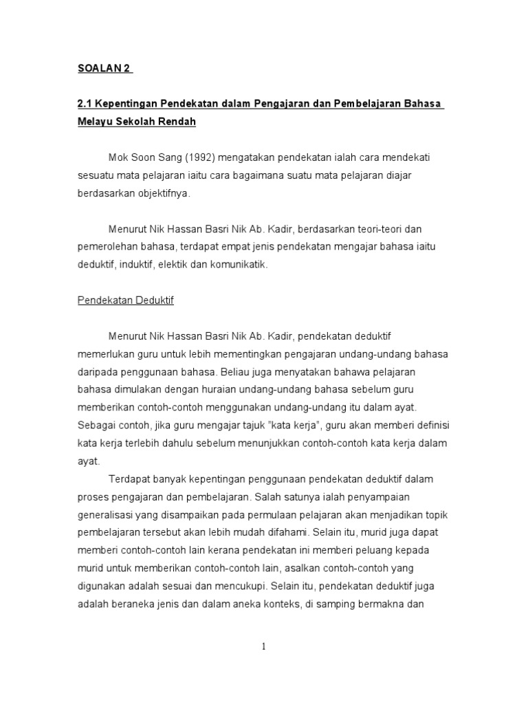 Doc Kaedah Pengajaran Bahasa Melayu Sekolah Rendah Lancelot Enchen Academia Edu