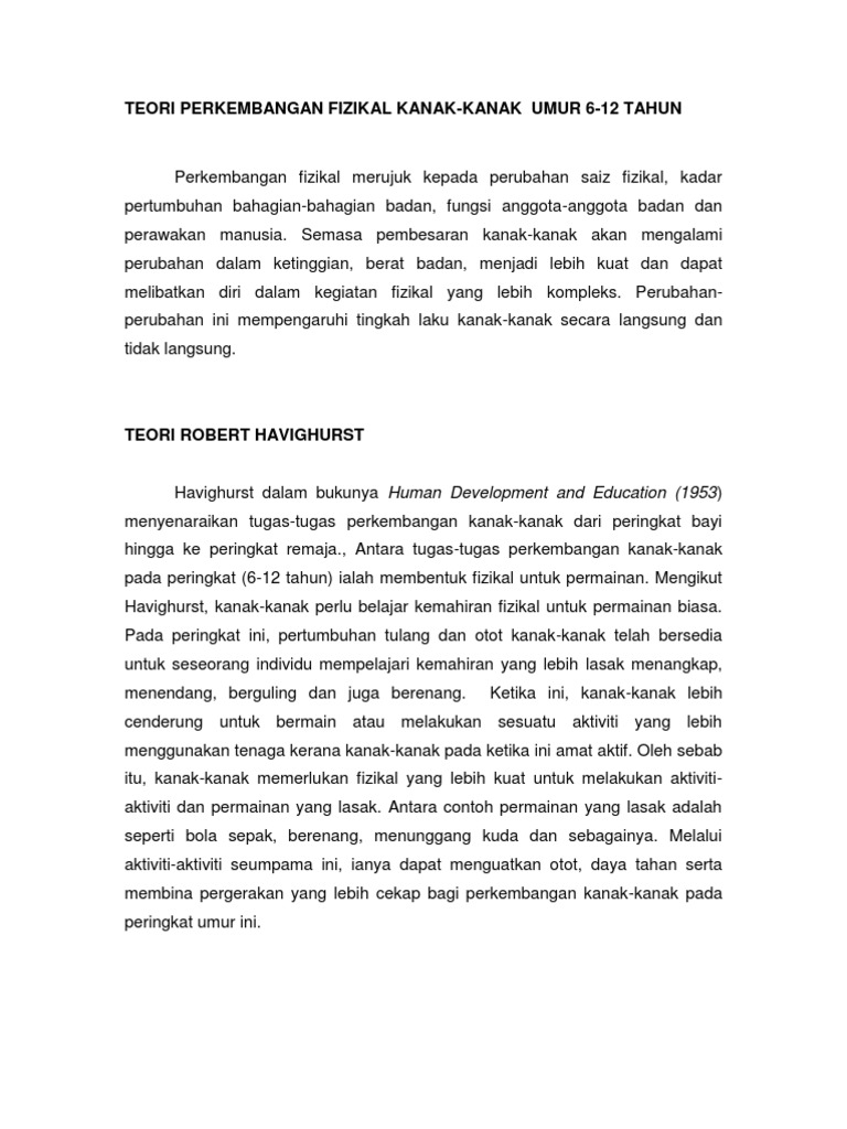 Teori Perkembangan Fizikal Kanak Kanak Umur 6 12 Tahun