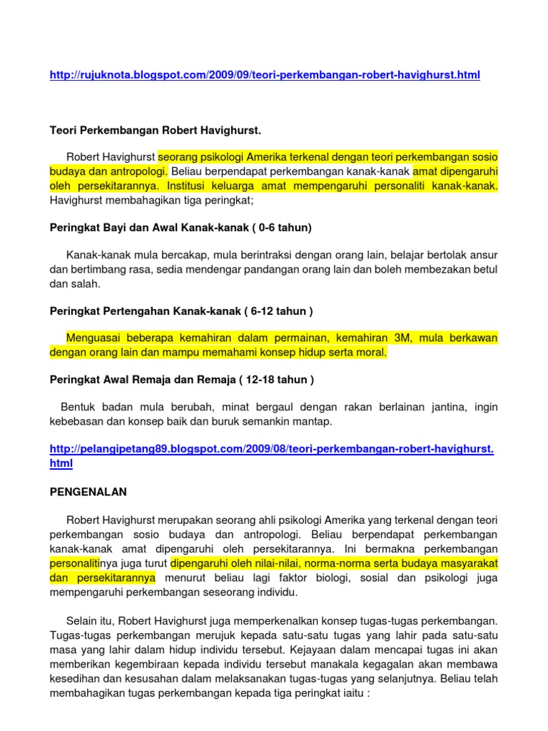 Teori Perkembangan Robert Havighurst Docx Teori Perkembangan Robert Havighurst Pengenalan Robert Havighurst Merupakan Seorang Ahli Psikologi Amerika Course Hero