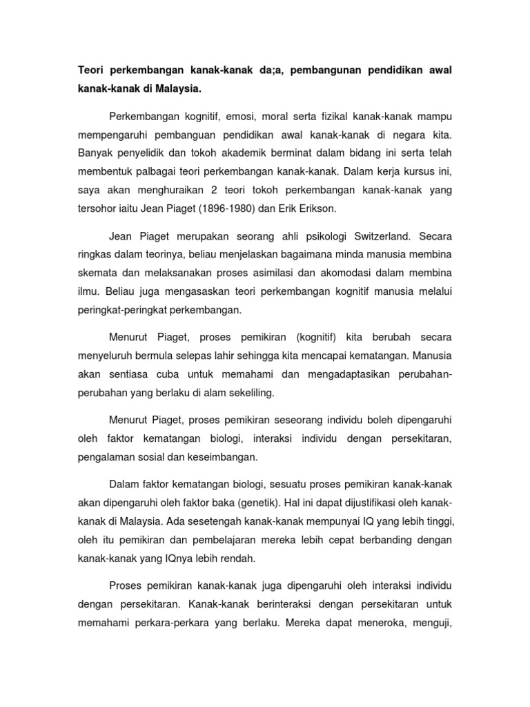 Doc Teori Perkembangan Dan Pembangunan Pendidikan Kanak Kanak Fiona Charli Academia Edu