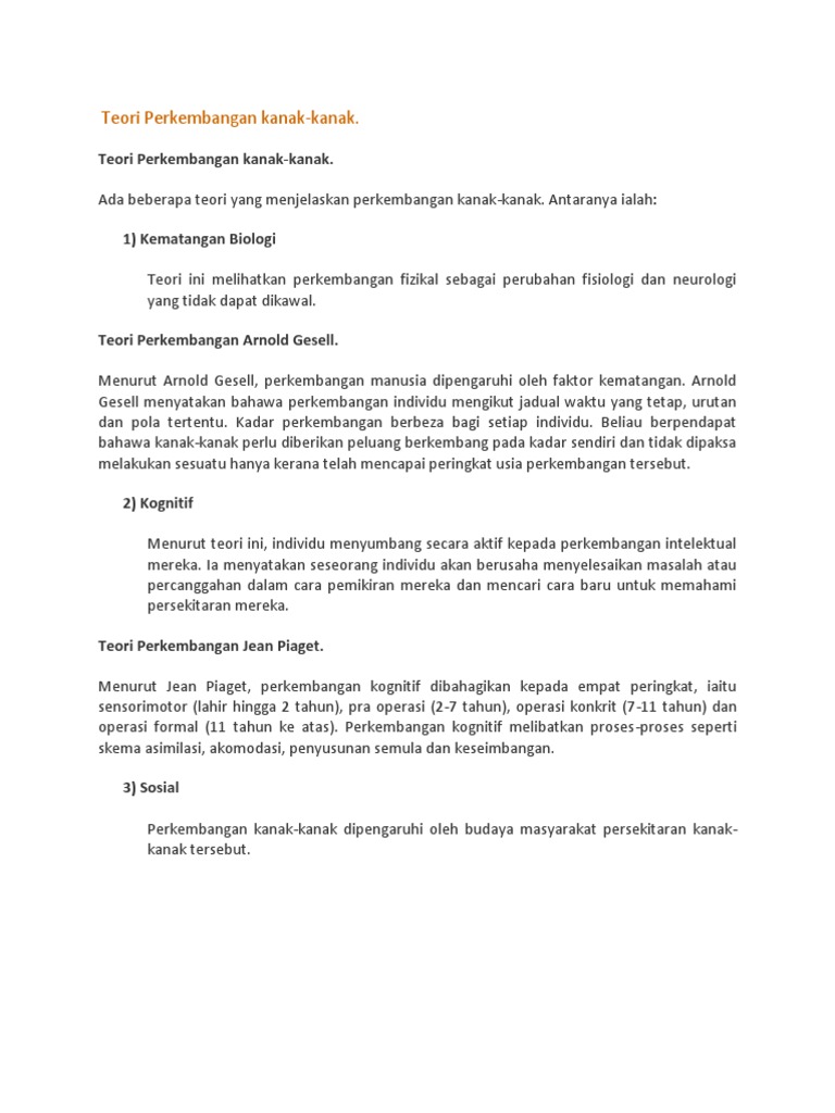 Teori Perkembangan Kanak
