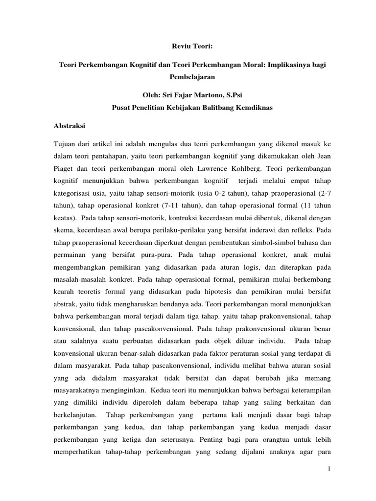 6 Artikel Jurnal Sri Fajar M Teori Perkembangan Kognitif Dan Teori