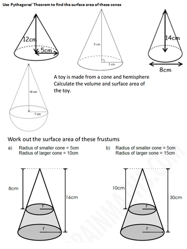 Volume And Surface Area Of Cones And Frustums Teaching Resources