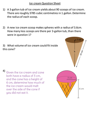 Volume Of Spheres And Cones Worksheet Teaching Resources
