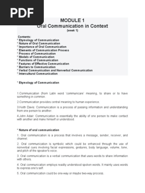 Pdf Oral Communication In Context John Earl Gatpo Academia Edu