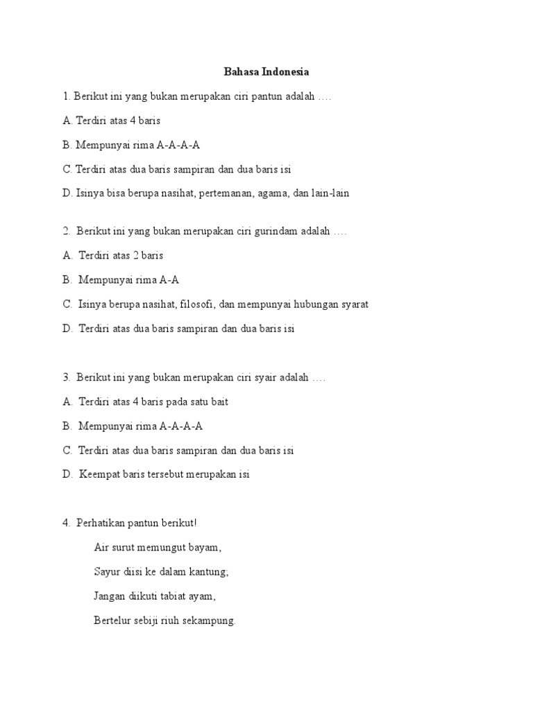 Yang Bukan Merupakan Ciri Ciri Pantun Adalah A Setiap Baris Terdiri Atas Empat Baitb Bersajak Brainly Co Id